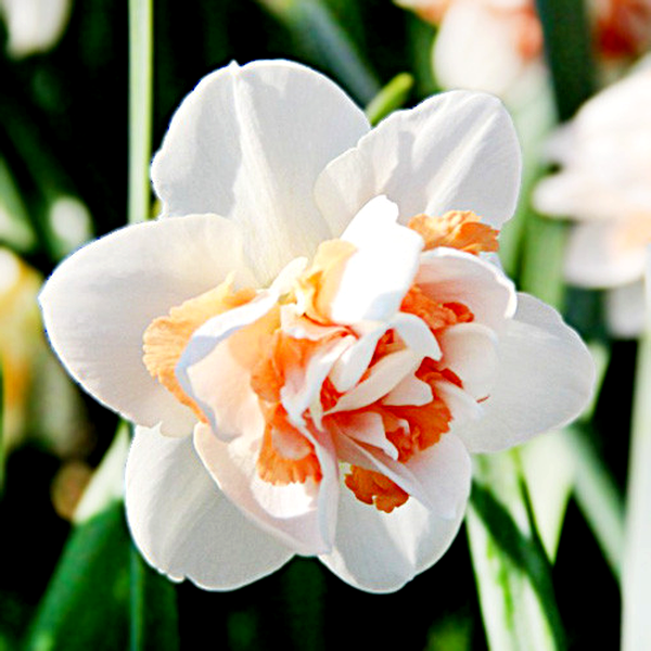 The classic narcissus flower features six outer petals (technically tepals) surrounding a central corona or "trumpet" that can be short like a cup or long and flared. This unique structure creates their instantly recognizable silhouette. Colors range from pure white and sunny yellow to combinations of cream, orange, pink, and even green, with many varieties featuring contrasting coronas that add visual interest.