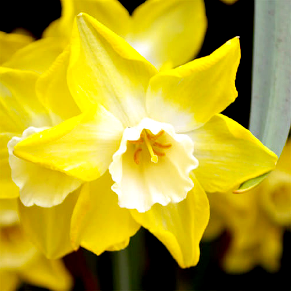 The classic narcissus flower features six outer petals (technically tepals) surrounding a central corona or "trumpet" that can be short like a cup or long and flared. This unique structure creates their instantly recognizable silhouette. Colors range from pure white and sunny yellow to combinations of cream, orange, pink, and even green, with many varieties featuring contrasting coronas that add visual interest.