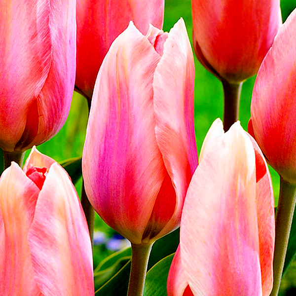 Tulips are iconic spring-blooming bulbs renowned for their elegant cup-shaped flowers and wide array of colors and forms. These bulbs produce single stems with distinctive flowers that can be found in virtually every color except true blue, including solid hues, bi-colors, and striking patterns with stripes, flames, or picotee edges.