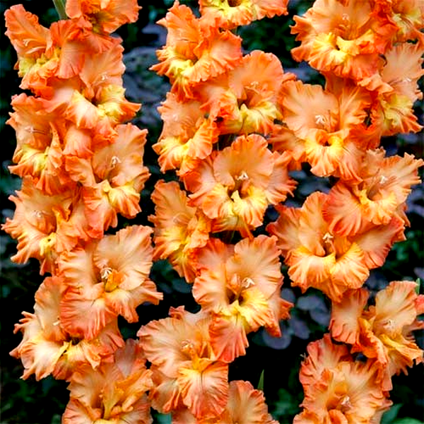 Gladiolus is a genus of perennial flowering plants that grow from corms (bulb-like underground storage organs) and are beloved for their tall, dramatic flower spikes. These striking plants produce sword-shaped leaves and towering stems that can reach 2-5 feet in height, topped with multiple funnel-shaped flowers arranged in dense, vertical clusters called racemes.