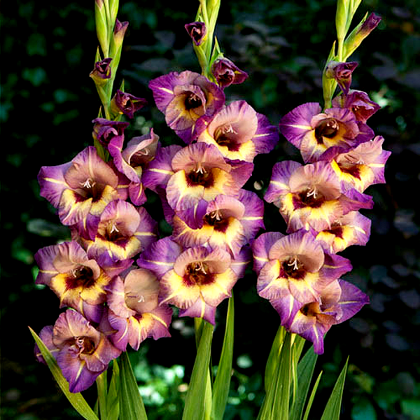 Native primarily to South Africa, with some species from the Mediterranean region, gladioli have become popular garden plants worldwide. They bloom in summer and are prized as cut flowers due to their impressive height and long-lasting blooms. The plants prefer full sun and well-drained soil, and in colder climates, the corms must be lifted and stored indoors during winter. Gladioli are excellent for creating dramatic vertical elements in flower gardens and are commonly grown in rows for cutting. There are over 260 species and countless cultivars, ranging from miniature varieties to giant exhibition types.