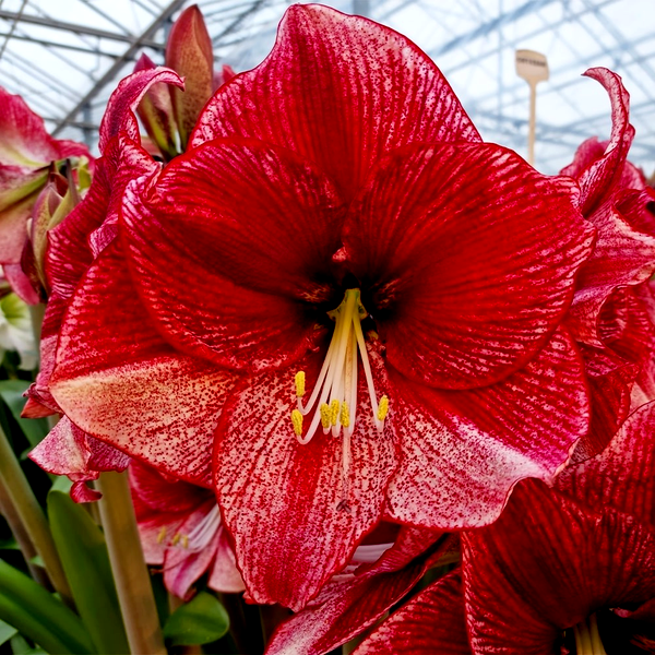 Amaryllis is a striking bulbous flowering plant best known for its large, trumpet-shaped blooms that make it a popular choice for indoor flowering during winter months. The most commonly cultivated species, Hippeastrum (often called amaryllis in horticulture), produces dramatic flowers that can reach 6-8 inches across, typically in shades of red, pink, white, orange, or striped combinations.