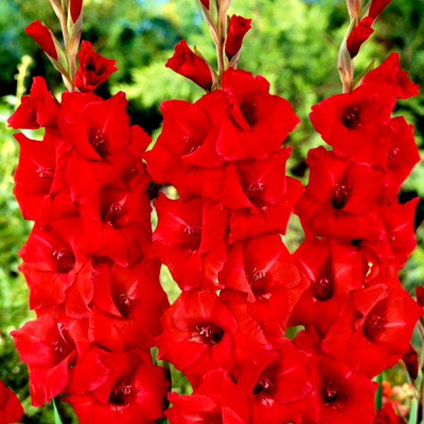 Gladiolus is a genus of perennial flowering plants that grow from corms (bulb-like underground storage organs) and are beloved for their tall, dramatic flower spikes. These striking plants produce sword-shaped leaves and towering stems that can reach 2-5 feet in height, topped with multiple funnel-shaped flowers arranged in dense, vertical clusters called racemes.