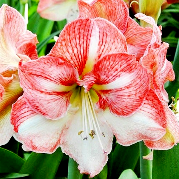 Amaryllis is a striking bulbous flowering plant best known for its large, trumpet-shaped blooms that make it a popular choice for indoor flowering during winter months. The most commonly cultivated species, Hippeastrum (often called amaryllis in horticulture), produces dramatic flowers that can reach 6-8 inches across, typically in shades of red, pink, white, orange, or striped combinations.