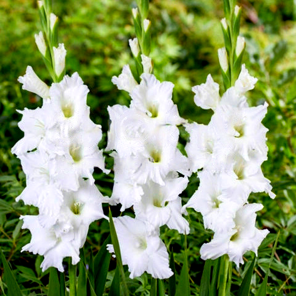Native primarily to South Africa, with some species from the Mediterranean region, gladioli have become popular garden plants worldwide. They bloom in summer and are prized as cut flowers due to their impressive height and long-lasting blooms. The plants prefer full sun and well-drained soil, and in colder climates, the corms must be lifted and stored indoors during winter. Gladioli are excellent for creating dramatic vertical elements in flower gardens and are commonly grown in rows for cutting. There are over 260 species and countless cultivars, ranging from miniature varieties to giant exhibition types.