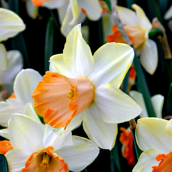 Narcissus flowers typically bloom in early to mid-spring, often pushing through the last snow to create drifts of color in gardens, meadows, and woodlands. They're remarkably hardy and low-maintenance, multiplying naturally over time to form large colonies. Most varieties are also deer and rodent resistant due to toxic alkaloids in all parts of the plant.