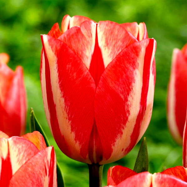 Tulips are iconic spring-blooming bulbs renowned for their elegant cup-shaped flowers and wide array of colors and forms. These bulbs produce single stems with distinctive flowers that can be found in virtually every color except true blue, including solid hues, bi-colors, and striking patterns with stripes, flames, or picotee edges.