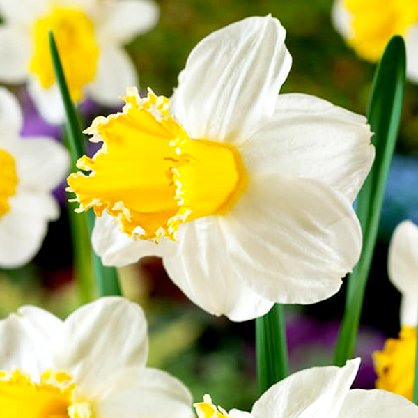 Narcissus flowers typically bloom in early to mid-spring, often pushing through the last snow to create drifts of color in gardens, meadows, and woodlands. They're remarkably hardy and low-maintenance, multiplying naturally over time to form large colonies. Most varieties are also deer and rodent resistant due to toxic alkaloids in all parts of the plant.