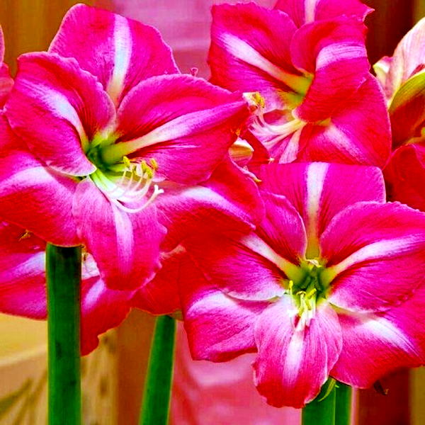 Native to South America, particularly the Andes mountains and Brazil, amaryllis has become a beloved houseplant worldwide. It's especially popular as a holiday gift because the bulbs can be timed to bloom indoors during winter. The plants prefer bright, indirect light and well-draining soil. After blooming, the bulb enters a dormant period and can be stored to reflower the following year. In warmer climates, some varieties can be grown outdoors year-round, where they may naturalize and form clumps over time.