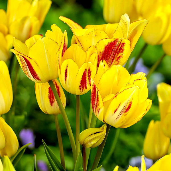 Tulips are iconic spring-blooming bulbs renowned for their elegant cup-shaped flowers and wide array of colors and forms. These bulbs produce single stems with distinctive flowers that can be found in virtually every color except true blue, including solid hues, bi-colors, and striking patterns with stripes, flames, or picotee edges.