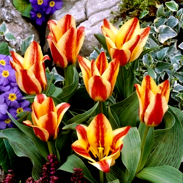 Tulips are iconic spring-blooming bulbs renowned for their elegant cup-shaped flowers and wide array of colors and forms. These bulbs produce single stems with distinctive flowers that can be found in virtually every color except true blue, including solid hues, bi-colors, and striking patterns with stripes, flames, or picotee edges.