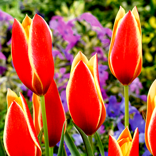 Tulips are iconic spring-blooming bulbs renowned for their elegant cup-shaped flowers and wide array of colors and forms. These bulbs produce single stems with distinctive flowers that can be found in virtually every color except true blue, including solid hues, bi-colors, and striking patterns with stripes, flames, or picotee edges.