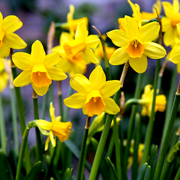 Narcissus flowers typically bloom in early to mid-spring, often pushing through the last snow to create drifts of color in gardens, meadows, and woodlands. They're remarkably hardy and low-maintenance, multiplying naturally over time to form large colonies. Most varieties are also deer and rodent resistant due to toxic alkaloids in all parts of the plant.