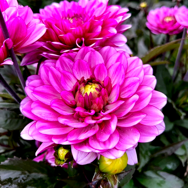 Dahlias grow from underground tubers and typically reach heights of 1-6 feet, depending on the variety. They bloom from midsummer until the first frost, making them valuable for extended garden color. The plants prefer full sun and well-drained, fertile soil. In colder climates, the tubers must be lifted and stored indoors during winter. Dahlias are excellent for cut flowers and are popular in both cottage gardens and formal landscapes. There are over 40 species and thousands of cultivars, making them one of the most diverse flowering plants available to gardeners.