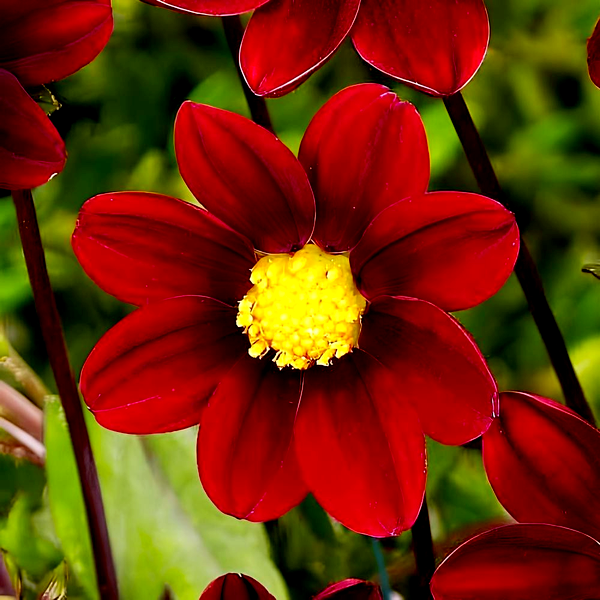Dahlias grow from underground tubers and typically reach heights of 1-6 feet, depending on the variety. They bloom from midsummer until the first frost, making them valuable for extended garden color. The plants prefer full sun and well-drained, fertile soil. In colder climates, the tubers must be lifted and stored indoors during winter. Dahlias are excellent for cut flowers and are popular in both cottage gardens and formal landscapes. There are over 40 species and thousands of cultivars, making them one of the most diverse flowering plants available to gardeners.