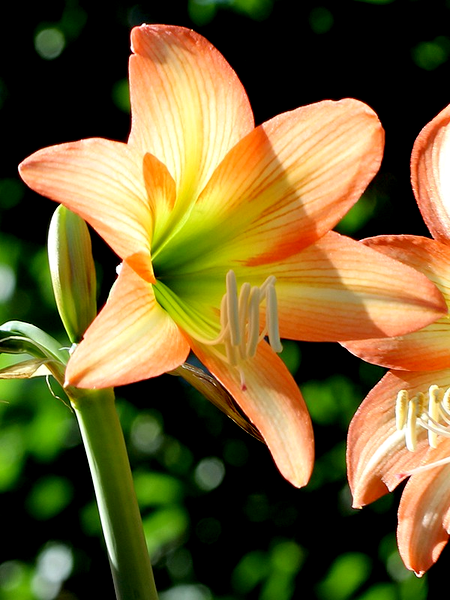 The plant grows from a large, rounded bulb that sends up a thick, hollow flower stalk called a scape, which can reach 12-24 inches tall. Each stalk typically bears 2-6 large, lily-like flowers that bloom in succession. The strap-shaped leaves are glossy green and usually emerge after or alongside the flowers, growing up to 18 inches long.