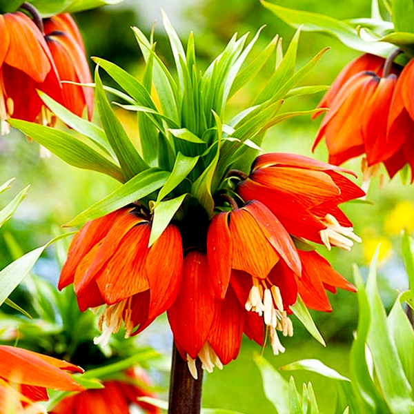 The flowers typically nod downward, hanging like lanterns from sturdy stems, and many species emit a subtle, sometimes musky fragrance. In gardens, fritillarias are prized for their unusual beauty and architectural form, though they can be challenging to grow as they often require specific soil conditions and may take several years to establish.