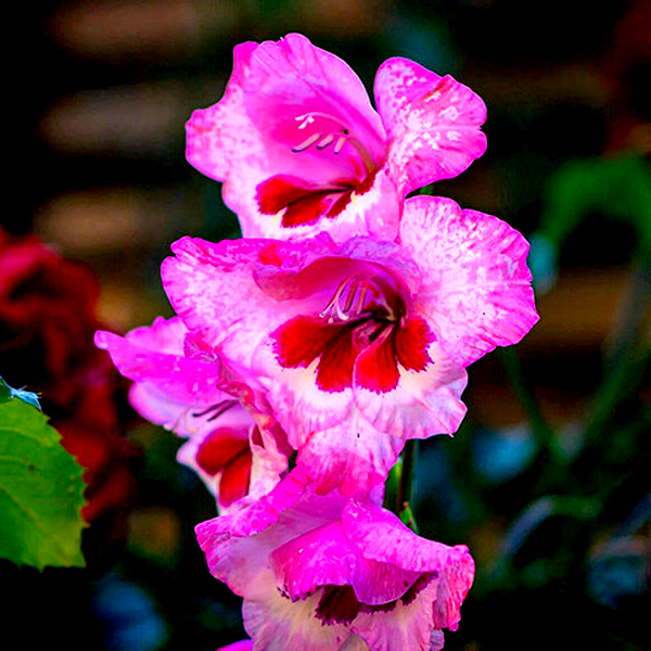 Native primarily to South Africa, with some species from the Mediterranean region, gladioli have become popular garden plants worldwide. They bloom in summer and are prized as cut flowers due to their impressive height and long-lasting blooms. The plants prefer full sun and well-drained soil, and in colder climates, the corms must be lifted and stored indoors during winter. Gladioli are excellent for creating dramatic vertical elements in flower gardens and are commonly grown in rows for cutting. There are over 260 species and countless cultivars, ranging from miniature varieties to giant exhibition types.